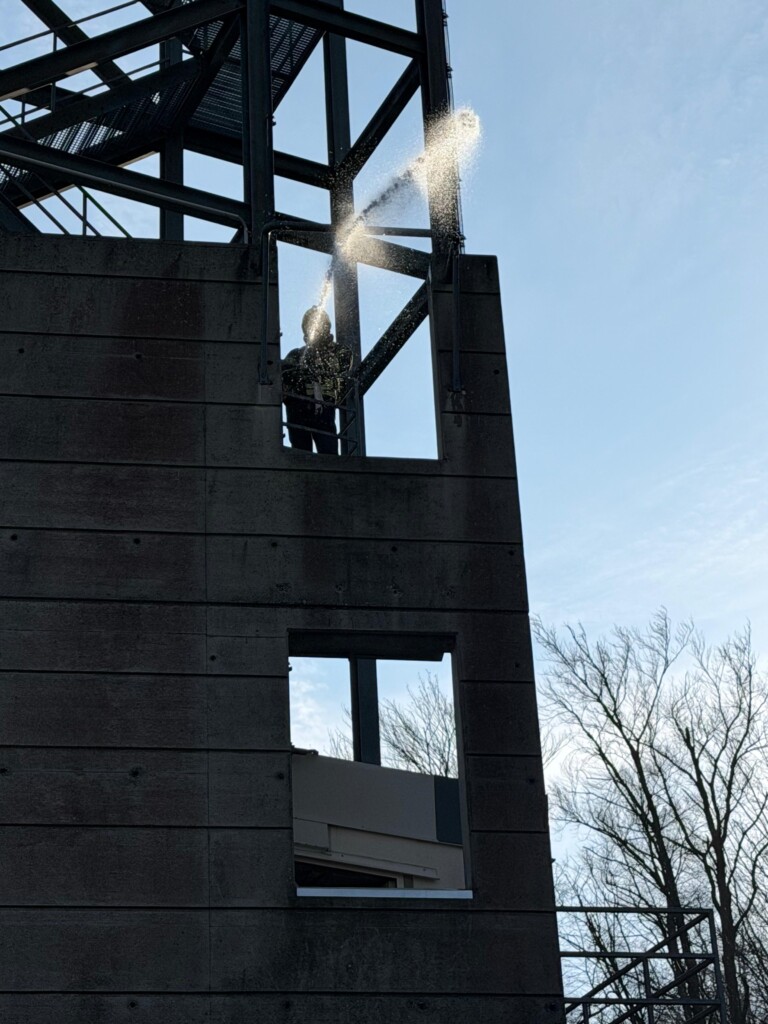 Die Wasserversorgung erfolgte über einen Hydranten, zur Steigleitung wurde eine B-Leitung gelegt. Besonderer Fokus lag neben der richtigen Anfahrt und dem Ausrüsten währenddessen vor allem auf der Arbeit der Atemschutzträger im Brandobjekt: strukturiertes Vorgehen im Innenangriff, richtige Schlauchführung, Kommunikation im Trupp sowie sicheres Arbeiten unter einsatznahen Bedingungen.