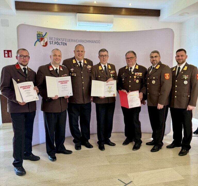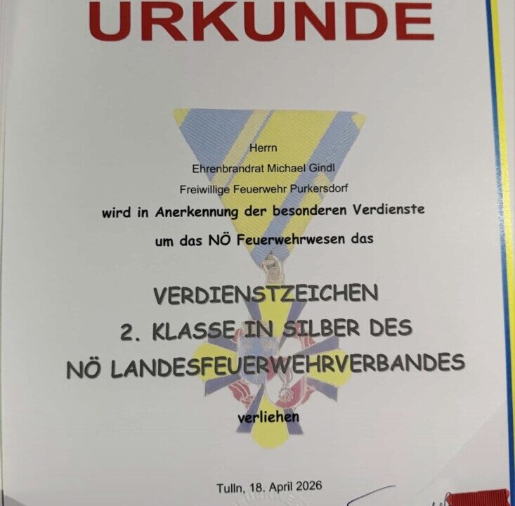 Ein besonderer Moment war die Auszeichnung von Ehrenbrandrat Michael Gindl, dem das Verdienstzeichen 2. Klasse in Silber des NÖ Landesfeuerwehrverbandes verliehen wurde.